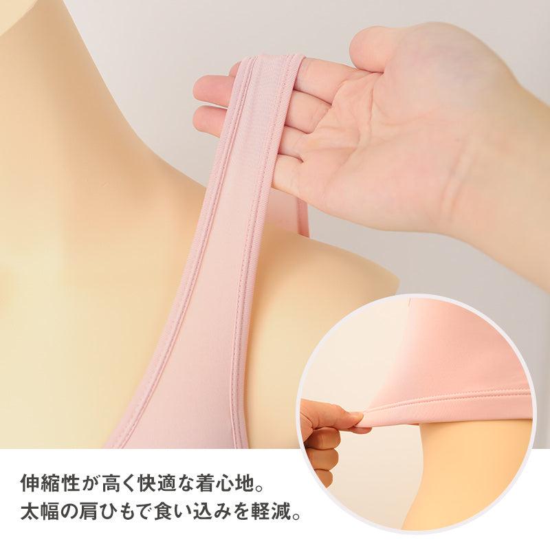 伸縮性が高く着脱も楽ちんで、ノンワイヤーで快適な着心地。