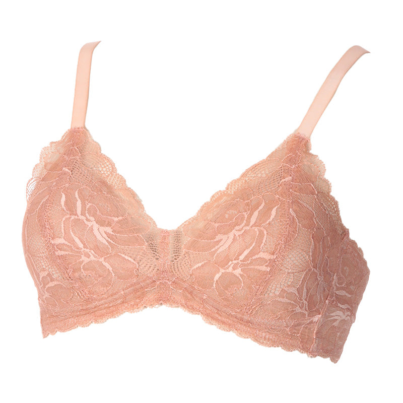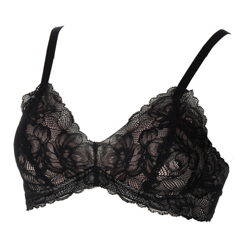 バストを包みこんで横流れを防ぐ、エレガントな総レースノンワイヤーブラジャーです。