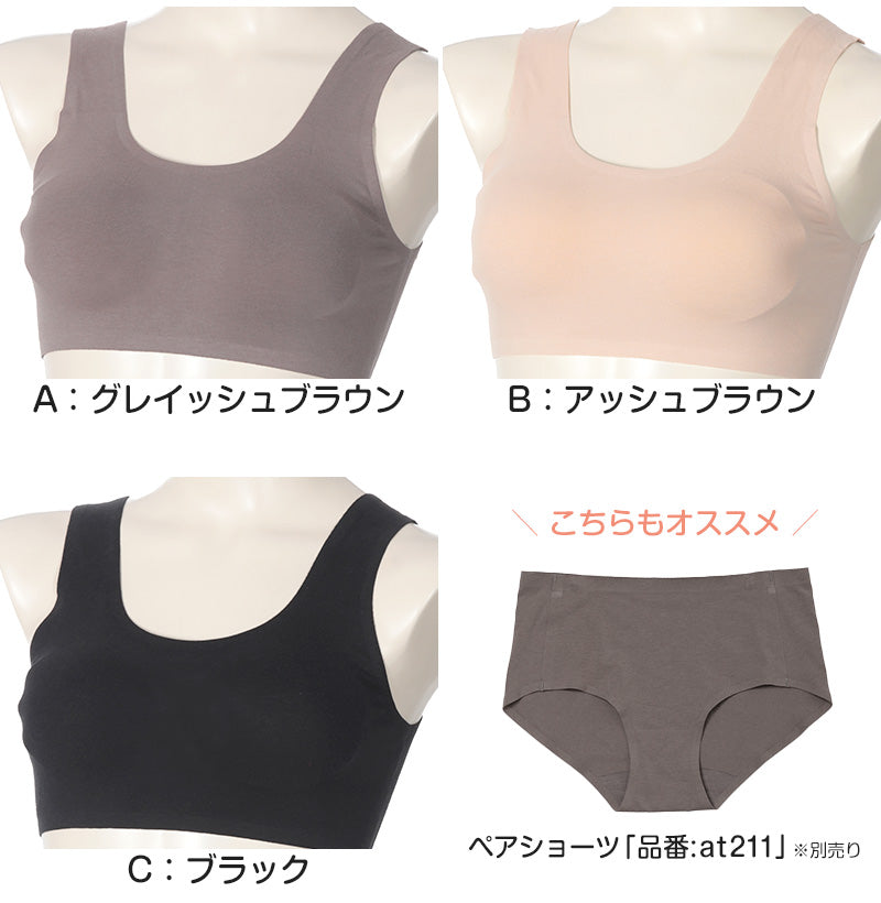 ノンワイヤー・ノンホック・タグレス(洗濯表示直接プリント)で肌当たりが優しい。