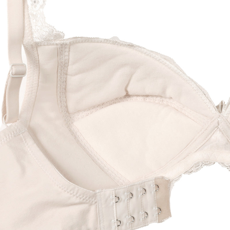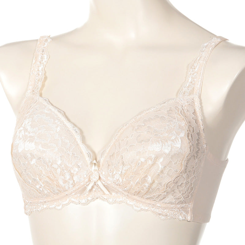 ほどよく伸びて伸縮性のあるレース(ラッセルストレッチレース)を使用しており、美しく華やかな印象でありながら、締め付けすぎずやさしいつけ心地です。