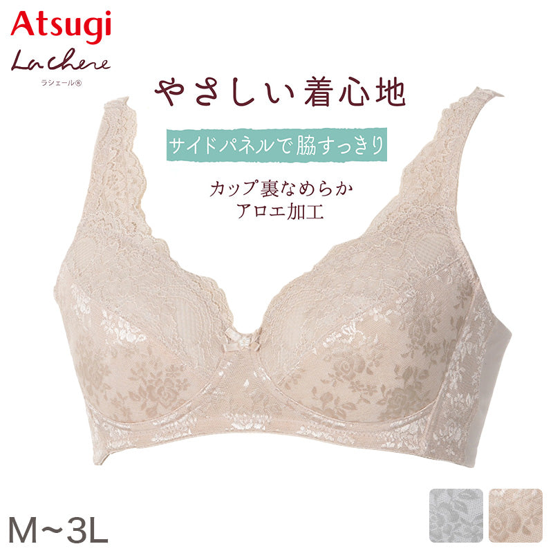 【レディース】/【ブラジャー】/【ノンワイヤー】/【M】/【L】/【LL】/【3L】/【ATSUGI[アツギ]】/【La chere[ラシェール]】/【グレー系】/【ベージュ系】/【通年】/【やわらかい】