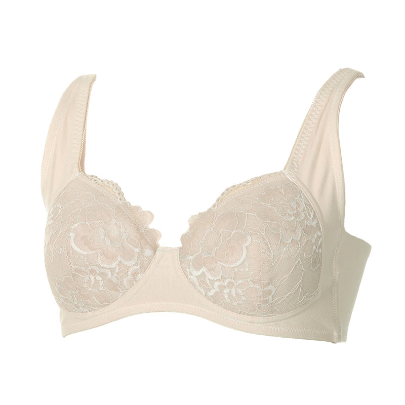 ほどよく伸びて伸縮性のあるレース(ラッセルストレッチレース)を使用しており、美しく華やかな印象でありながら、締め付けすぎずやさしいつけ心地です。
