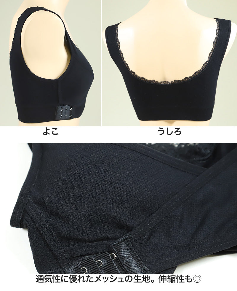 24美胸cross/メッシュブラジャー/リラックスブラジャー/バストケア/クロスホック/クロスブラ/メッシュパット/おうち時間/揺れにくい/くろ/単色しまむらファンにおすすめ l-bra-wl l-bra-ni 17304/snk016