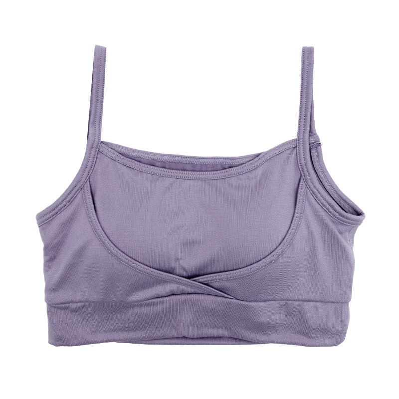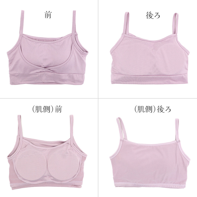 胸サポートカップ付き、昼夜兼用のノンワイヤー ハーフトップブラ。
