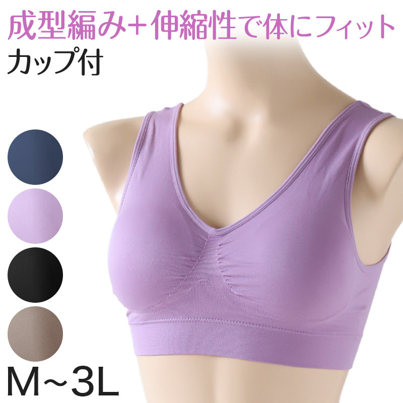 ノンワイヤー/成型編み/伸縮性あり/カップ取り外し可能/タグレス仕様(洗濯表示直接プリント)