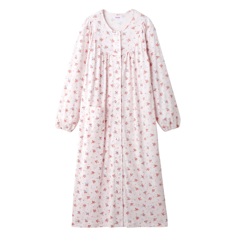 綿100%の「グンゼ 長袖ネグリジェ」は、敏感肌にも優しい素材で、快適な夜のひとときを叶えます。
