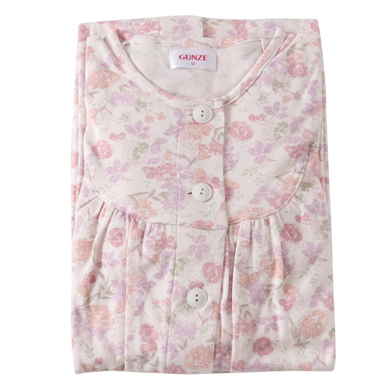 グンゼ ネグリジェ レディース 長袖 綿100% 前開き スナップボタン S M L LL