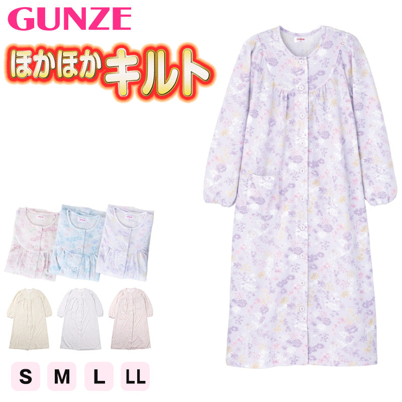 長袖 ネグリジェ レディース 綿混 前開き ルームウェア グンゼ S M L LL