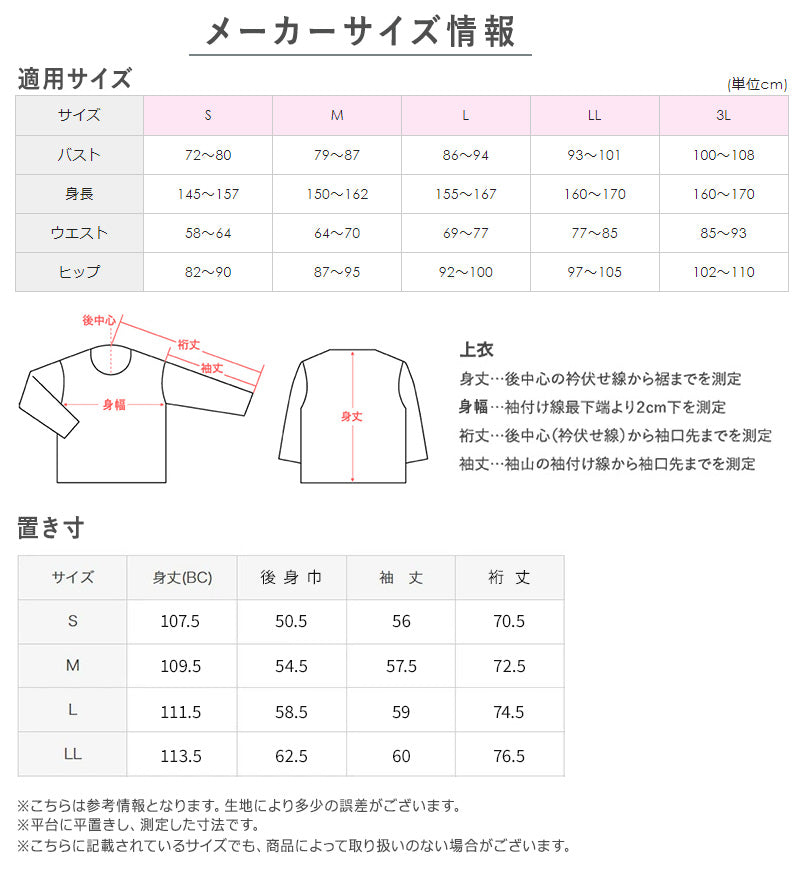 LL (身長:160-170cm/バスト:93-101cm/ウエスト:76-86cm/ヒップ:97-105cm)