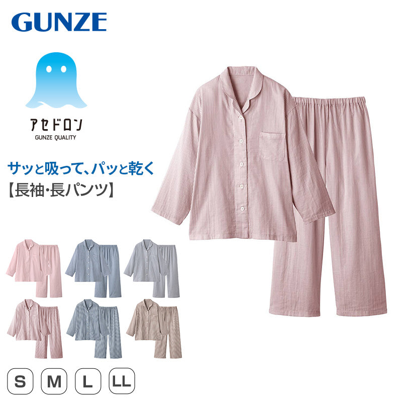アセドロン レディース パジャマ 長袖 長ズボン セット グンゼ S M L LL