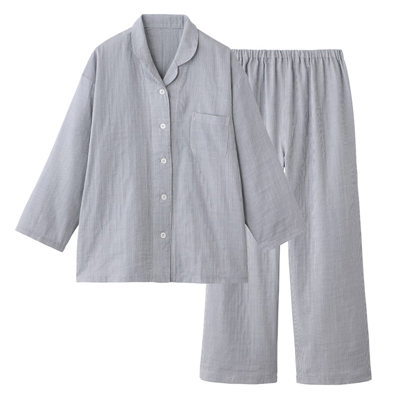 • 画像をギャラリービューアに読み込む, アセドロン レディース パジャマ 長袖 長ズボン セット グンゼ S M L LL 前開き 上下セット 快適 ルームウェア 部屋着 寝巻き ナイトウェア 長パンツ 婦人 ストライプ 冷え対策 シンプル おしゃれ 柔らかい かわいい ギフト プレゼント 母の日 敬老の日 (送料無料)