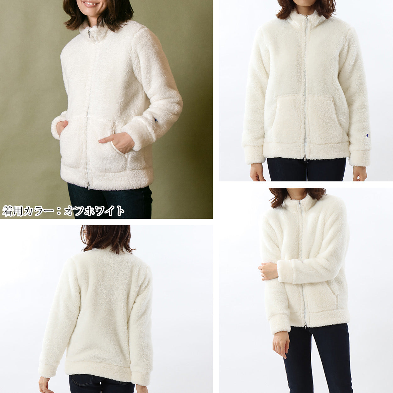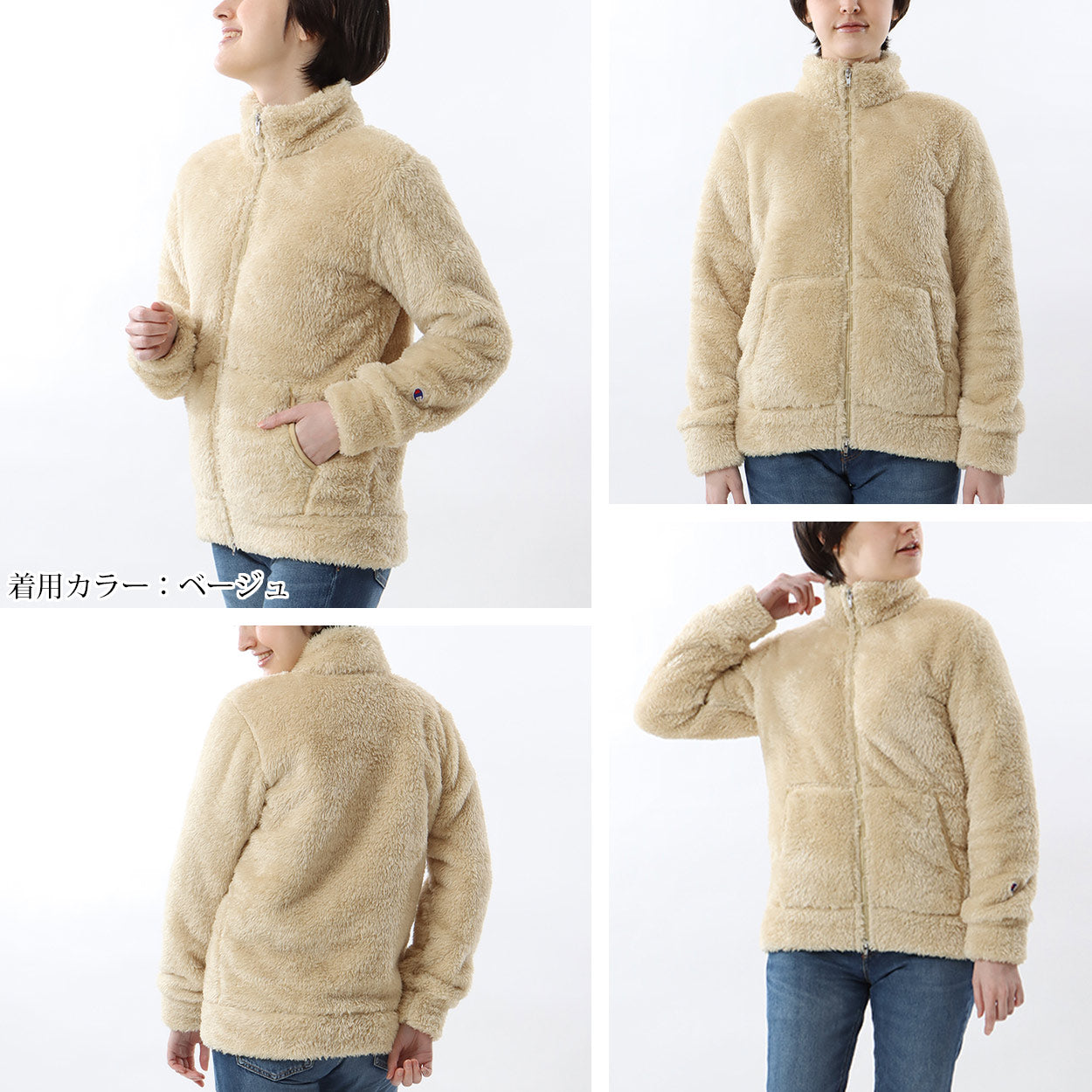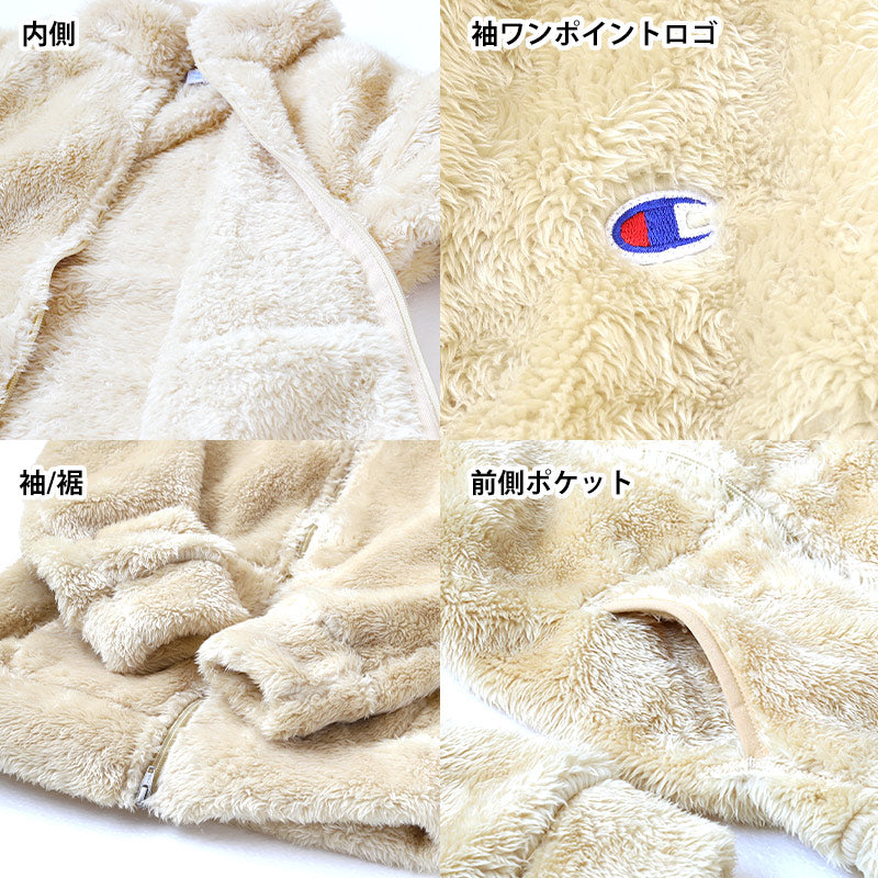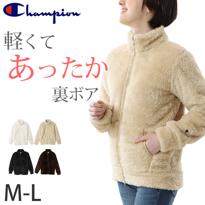 チャンピオン ジャケット レディース フリース 裏ボア 裏起毛 防寒 ルームウェア アウター 白 ベージュ 黒 茶色 軽い M-L
