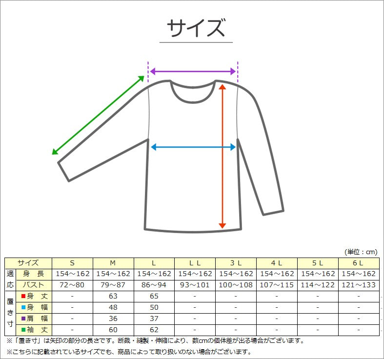 - M(身丈63cm/身幅48cm/肩幅36cm/袖丈60cm/身長154-162cm)