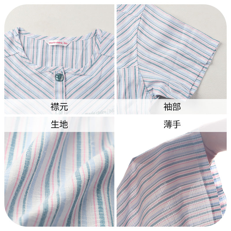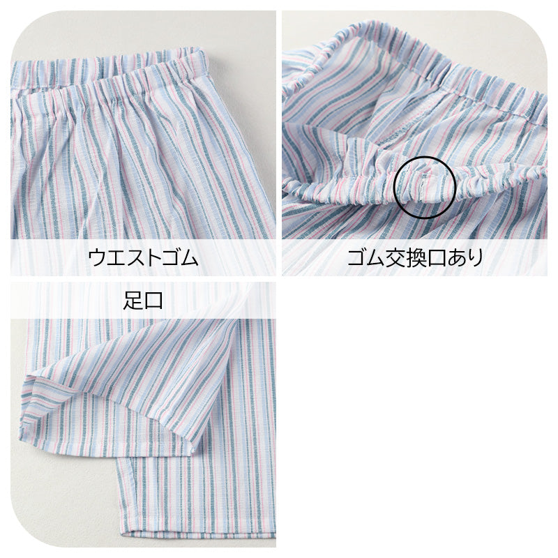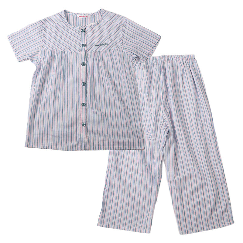 T/Cドビー ストライプ柄 薄手 半袖 7分丈パンツ