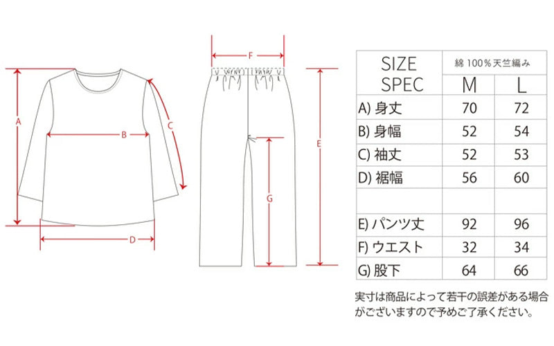 パジャマ レディース 綿100 天竺 ニット かぶりタイプ 婦人 部屋着 M・L