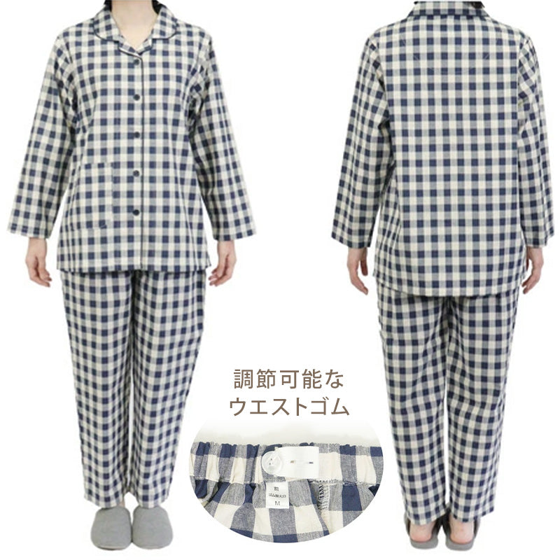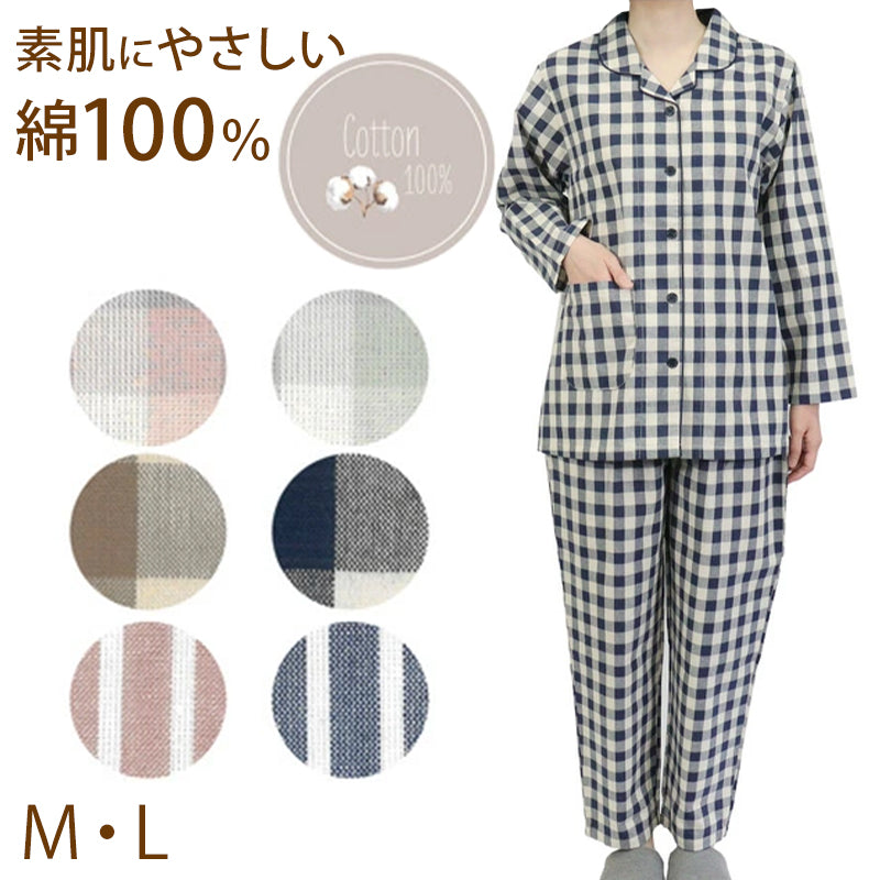 パジャマ レディース 綿100 長袖 婦人 先染め M・L