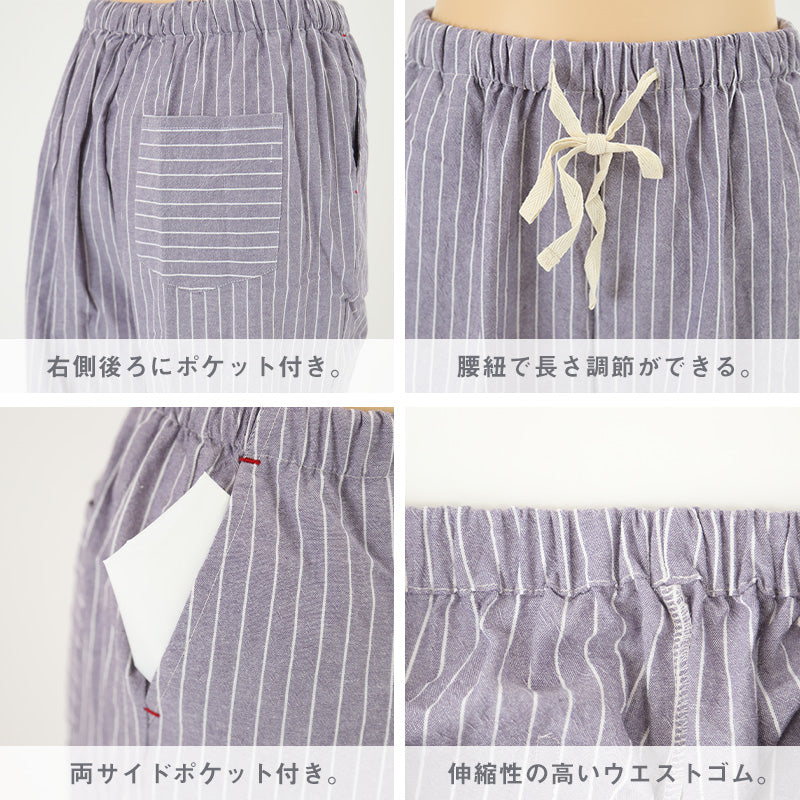 薄くて軽やかな着心地の 綿100% レディース パジャマパンツ です。