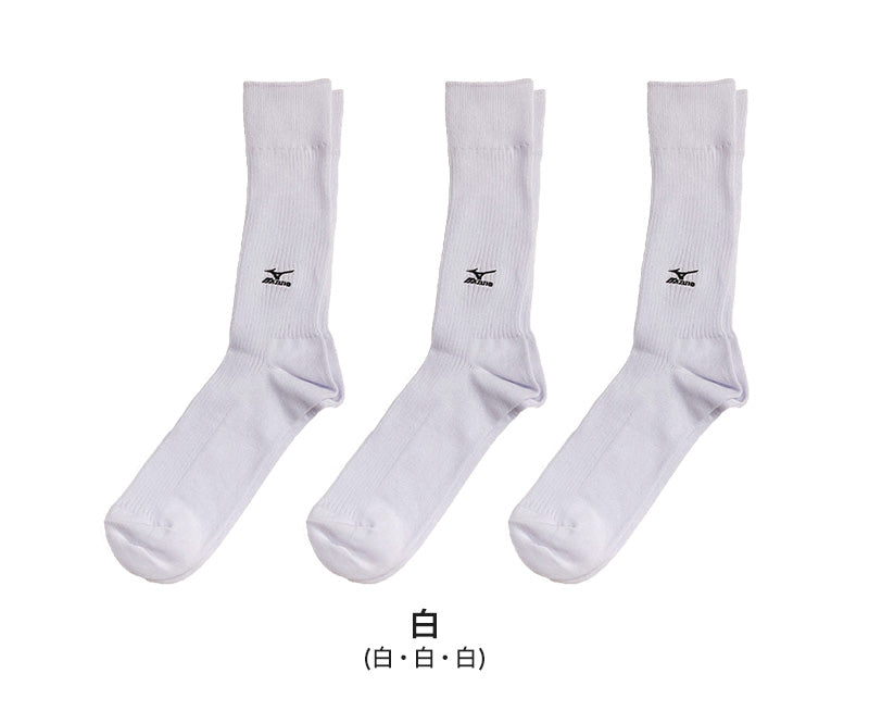 ミズノ クルーソックス メンズ 3足組 24-26cm・26-28cm