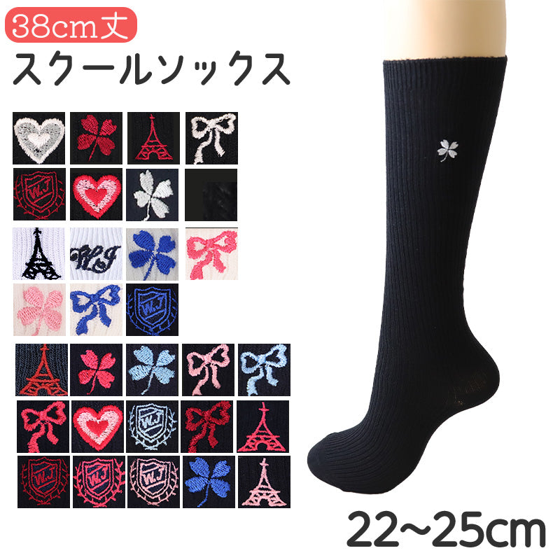 アウトレット スクール ハイソックス ワンポイント 女子 靴下 通学 学生 レディース 22 23 24 25 cm 白 紺 黒 スクールソックス 女の子 ソックス 子供 くつ下 くつした 学校 おしゃれ 刺繍 (在庫限り)