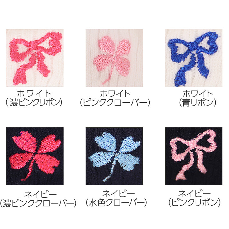 【ホワイト(濃いピンクリボン)/ネイビー(水色クローバー)】綿/アクリル/ナイロン/ポリエステル/ポリウレタン