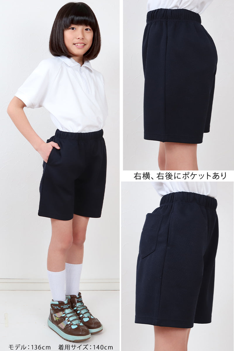 吸汗速乾/ウエストゴム仕様、調節ヒモ付き(ゴム取替不可)/右横、右後ろにポケット/ネームタグ付き
