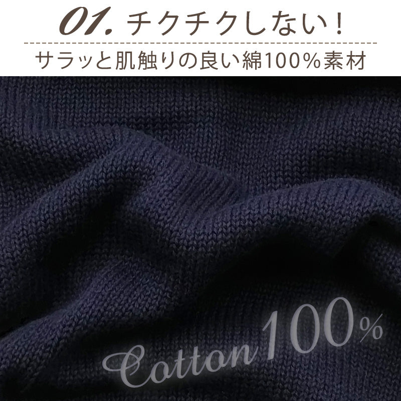 綿100%のニットは肌にやさしく、チクチクしにくいのが特徴です。