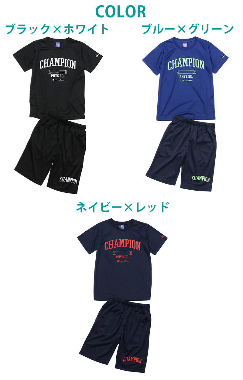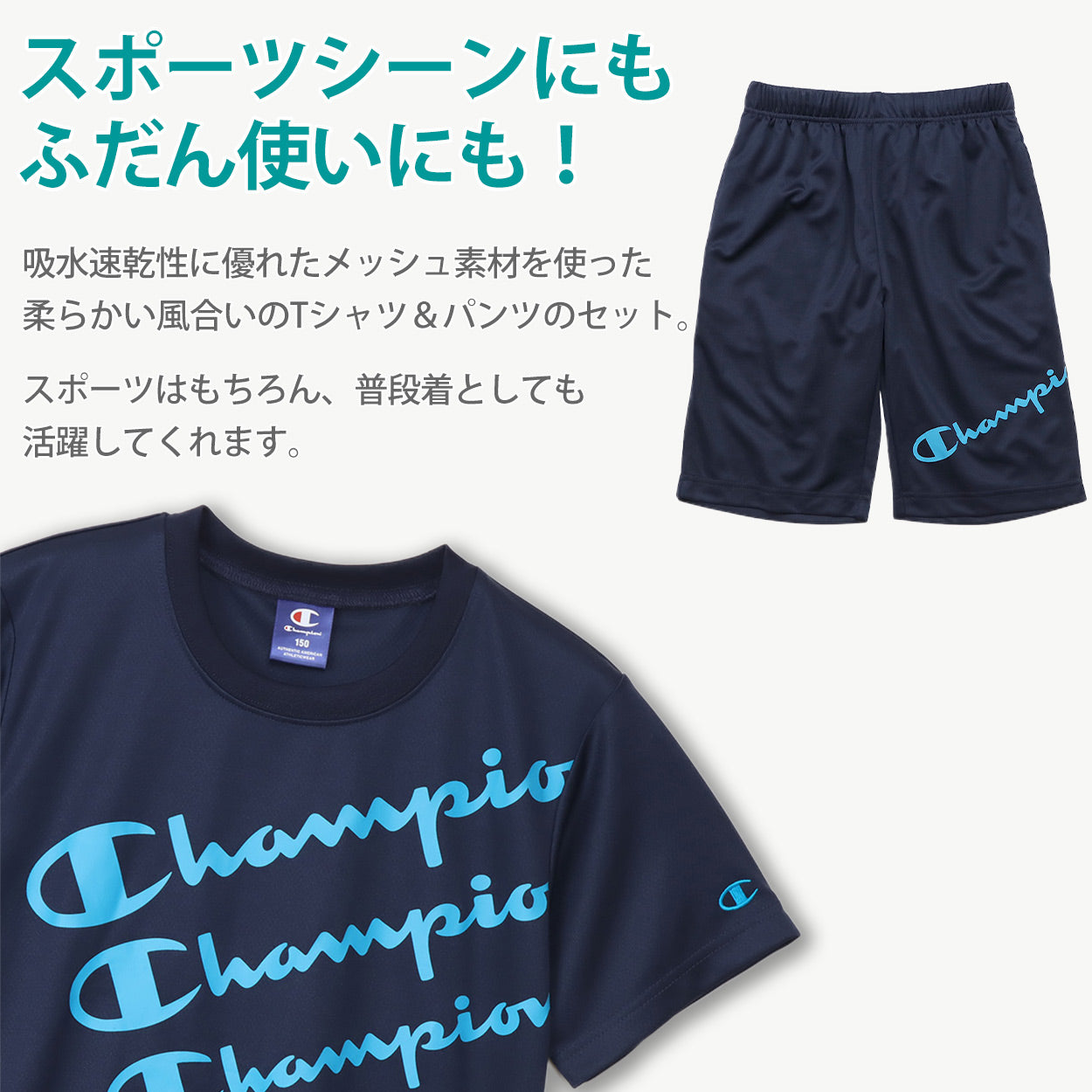 チャンピオン Tシャツ パンツ 上下 セットアップ キッズ 男の子 こども スポーツウェア トレーニングウェア ロゴ ブランド 黒 紺色 白 赤 130cm~160cm