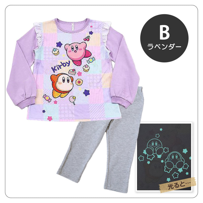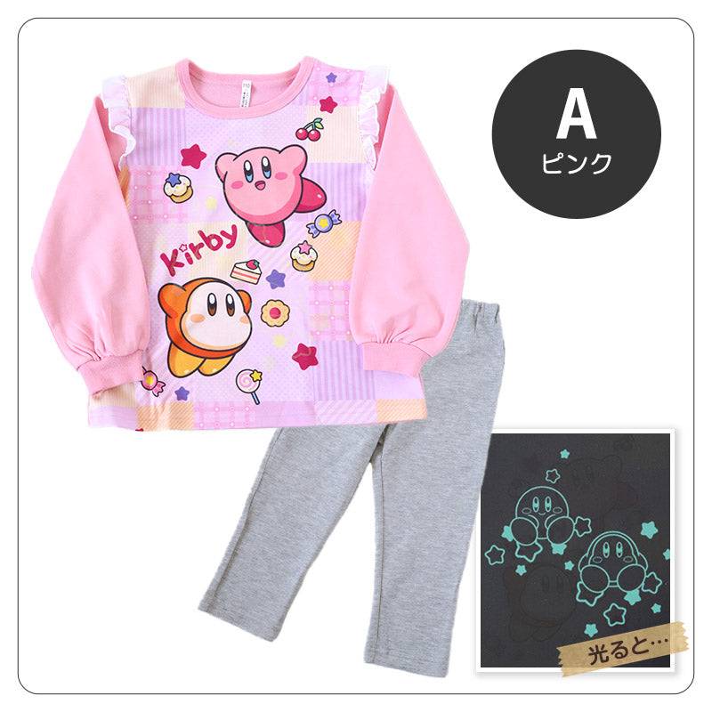 光るパジャマ 星のカービィ 長袖 女の子 キッズ パジャマ トレーナー 上下セット 110cm~140cm
