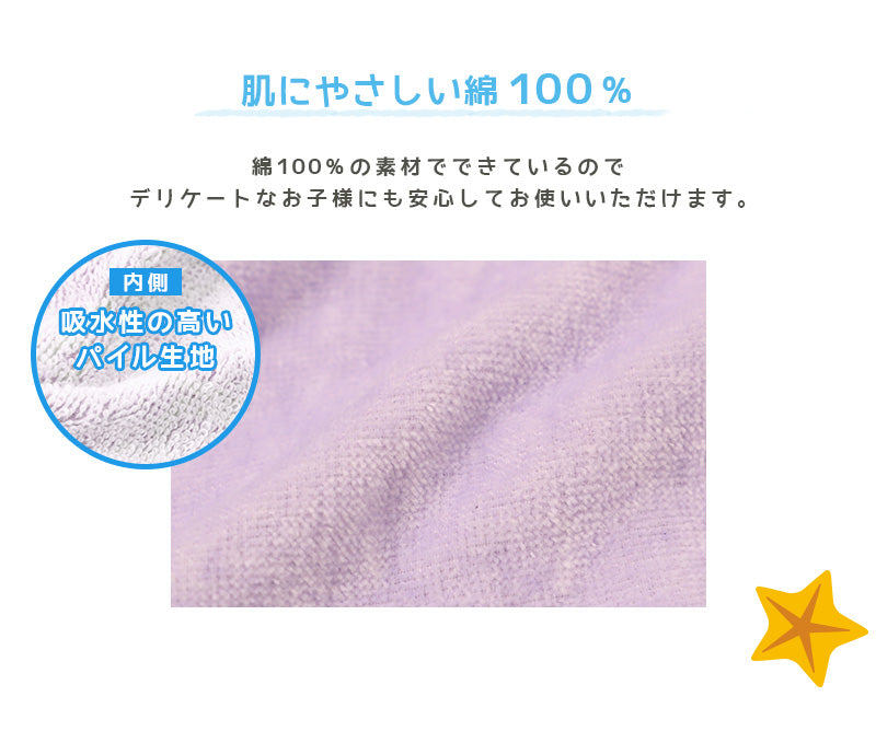 肌にやさしい綿100%の素材でできているので、デリケートなお子様にも安心してお使いいただけます。