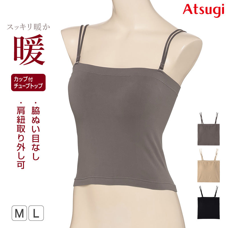 カップ付きチューブトップ ベアトップ カップ付き キャミソール レディース インナー ブラトップ ひびきにくい 肌着 オフショルダー アツギ M L