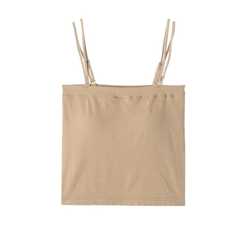 アンダーシャツ/インナーシャツ/アウターに響きにくい/シームレス/一体型カップ/固定カップ/カップ内蔵型/カップ付きキャミソール/ショート丈キャミソール/クロップド丈/無地/単色/しまむらファンにおすすめ l-cam-cup 48510CK/at521