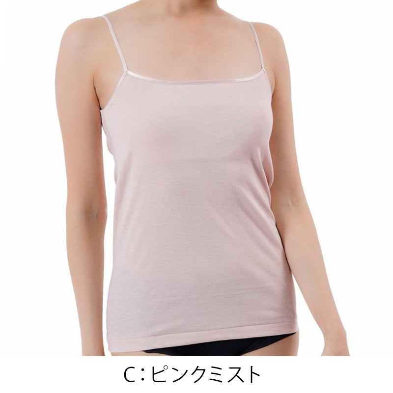 蜜ろう保湿加工が施されていて、優れた肌触りで柔らかく、上品な質感で丈夫に作られたカップ付きキャミソールです。
