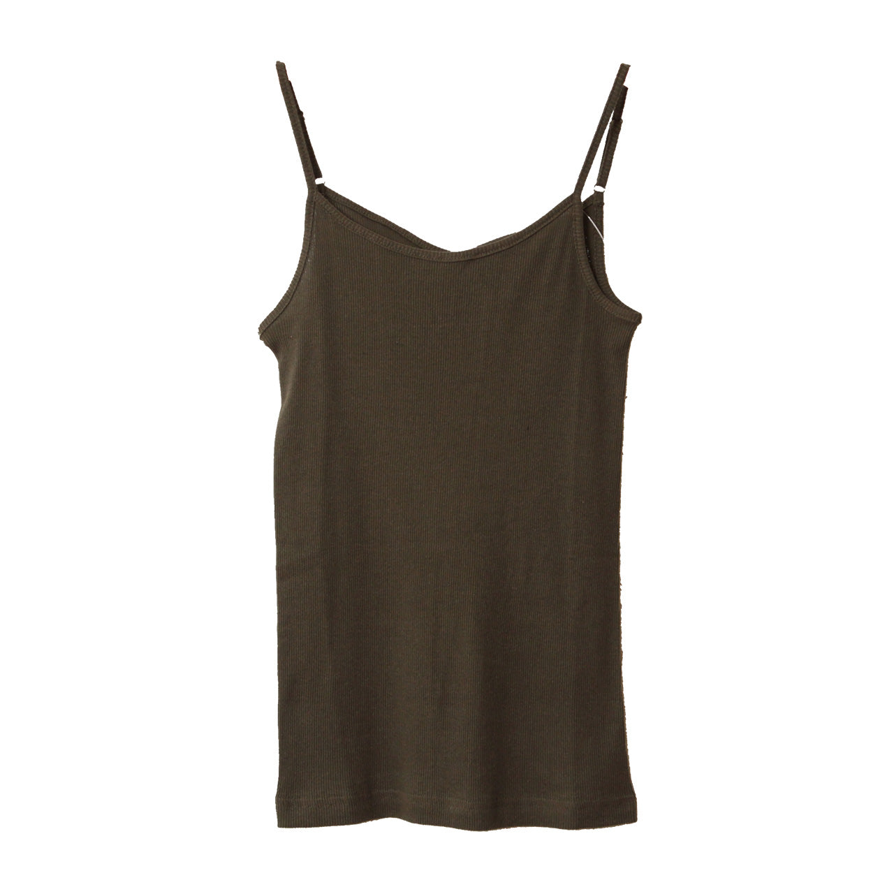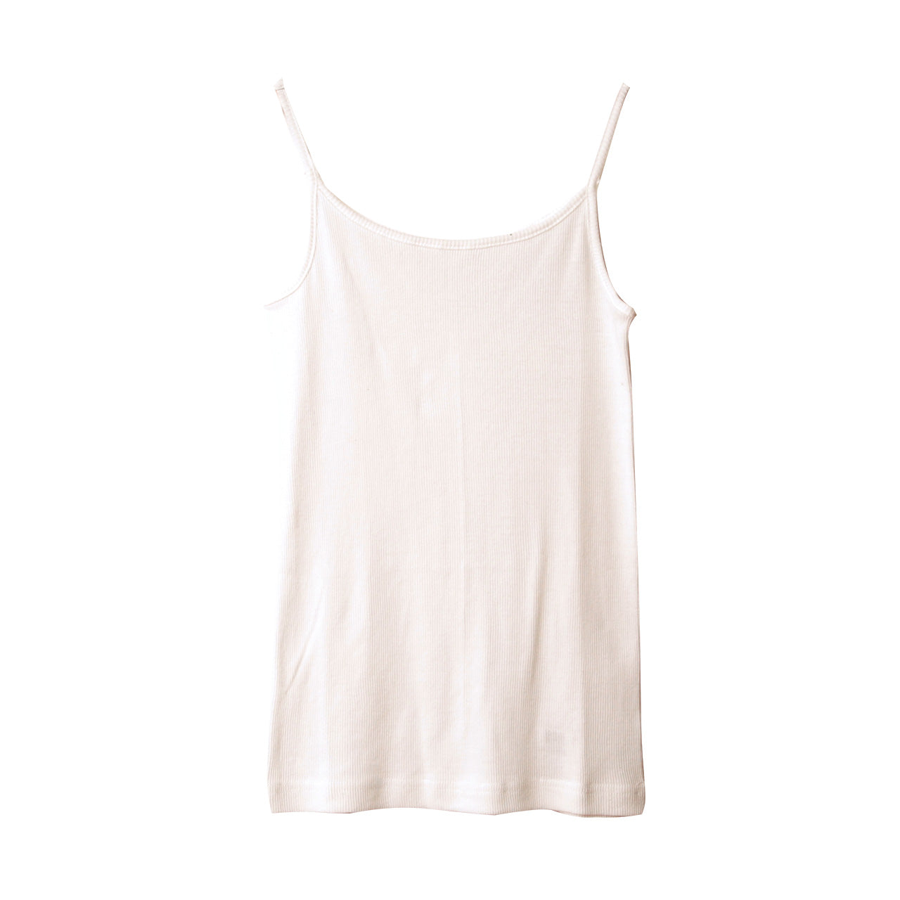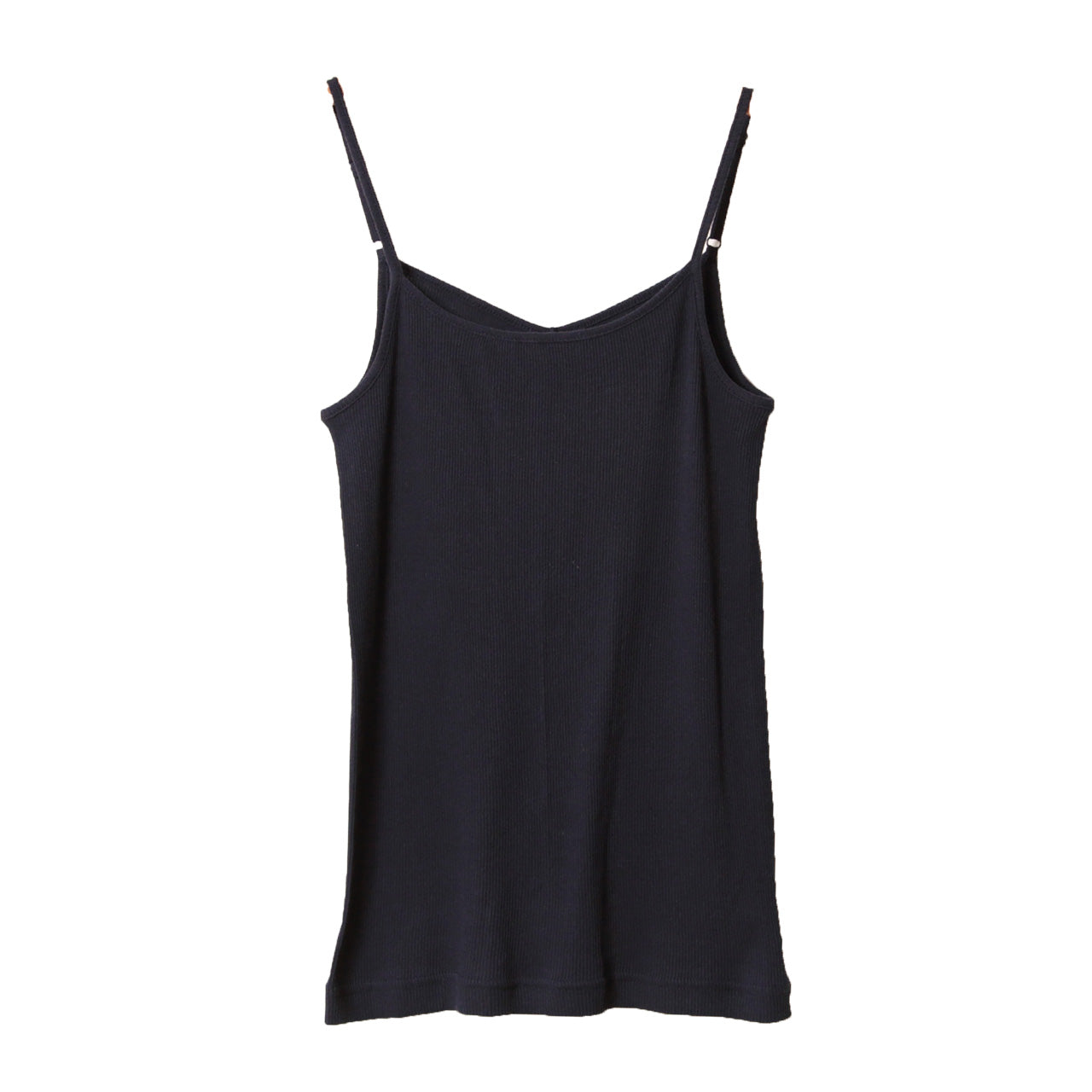 インナーとしてもアウターとしても使えるリブ編みのキャミソールです。