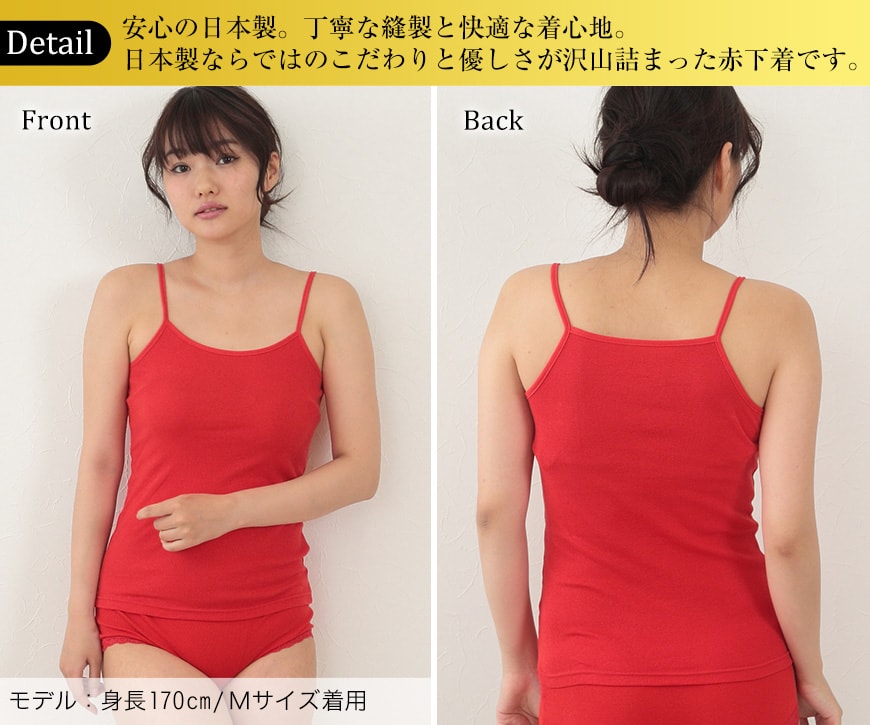 赤下着 レディース キャミソール M L LL 肌着 インナー 風水 運 レッド 女性 婦人 綿100% コットン 贈り物 ギフト プレゼントにぴったり 保温 お祝い 還暦 還暦祝い 健康祈願 幸運 開運 赤い下着 家内安全 商売繁盛 厄除け 招福