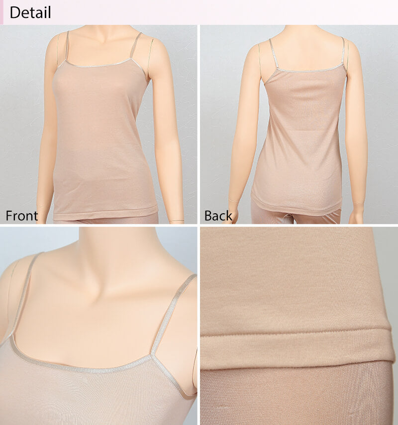 コットン100%インナーなので、敏感肌や肌が弱い女性も安心。1枚で着るとチクチクするニットのインナーや薄手トップスの透け防止にもおすすめ。
