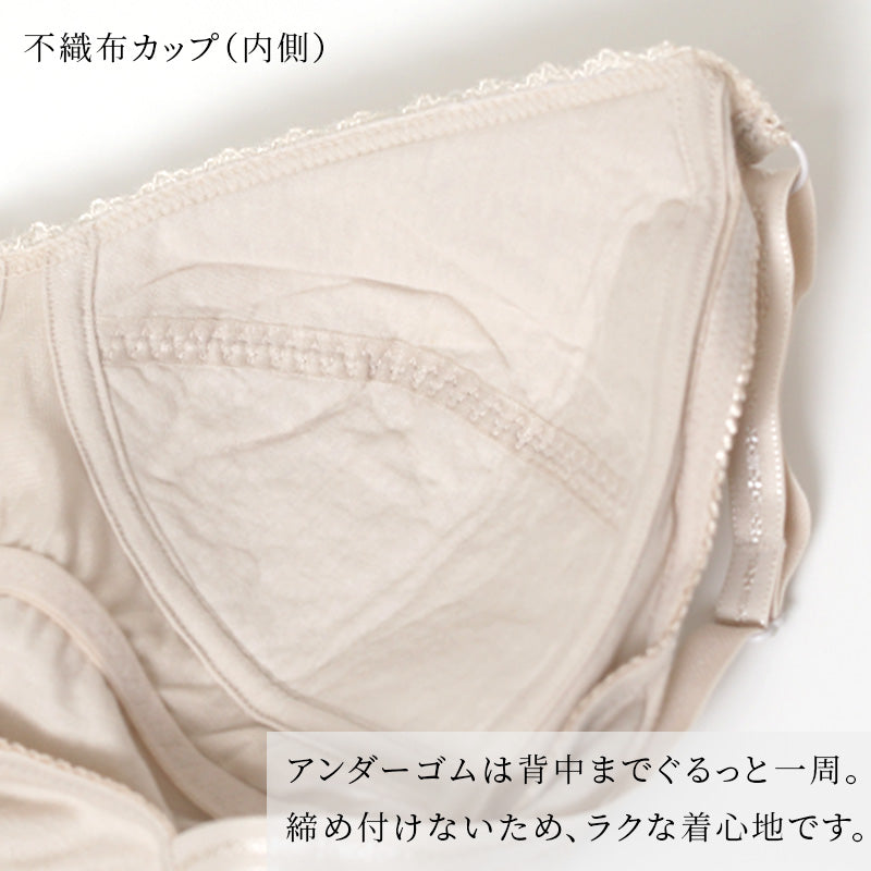 その特徴は、不織布カップとノンワイヤー、ホックなしのストレスフリーな設計です。