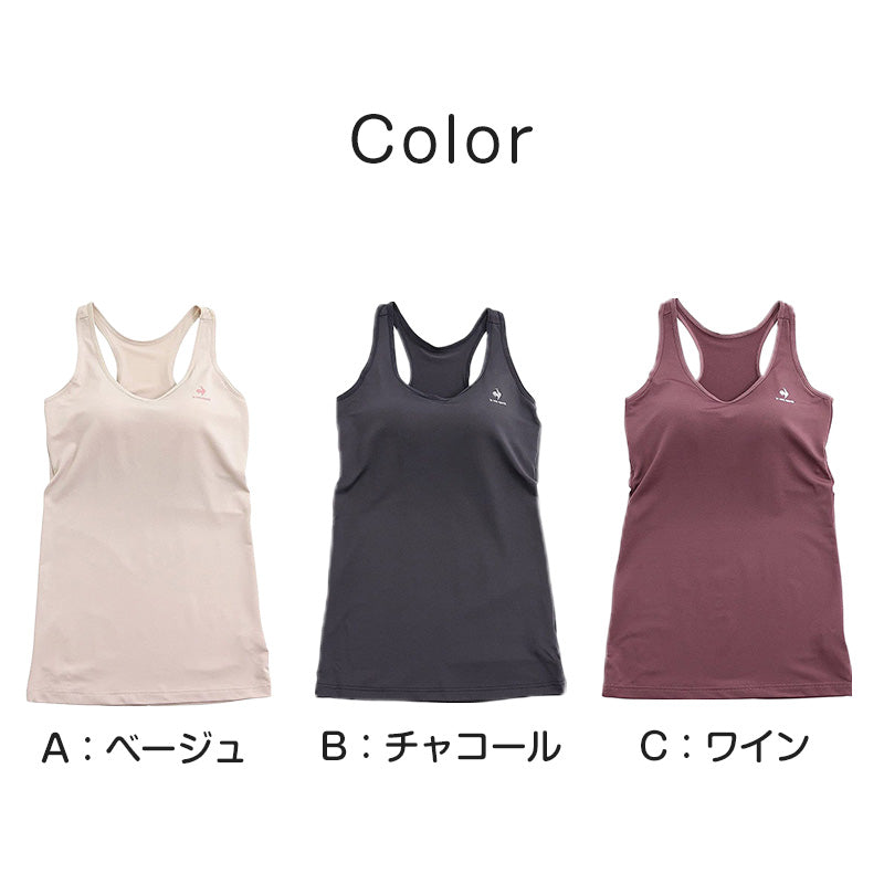 【レディース】/【タンクトップ】/【スポーツインナー】/【カップ付】/【M】/【L】/【LL】/【le coq sportif[ルコックスポルティフ]】/【グレー系】/【ブラック系】/【ベージュ系】/【パープル系】/【通年】/【吸汗速乾】/【ピッタリフィット】