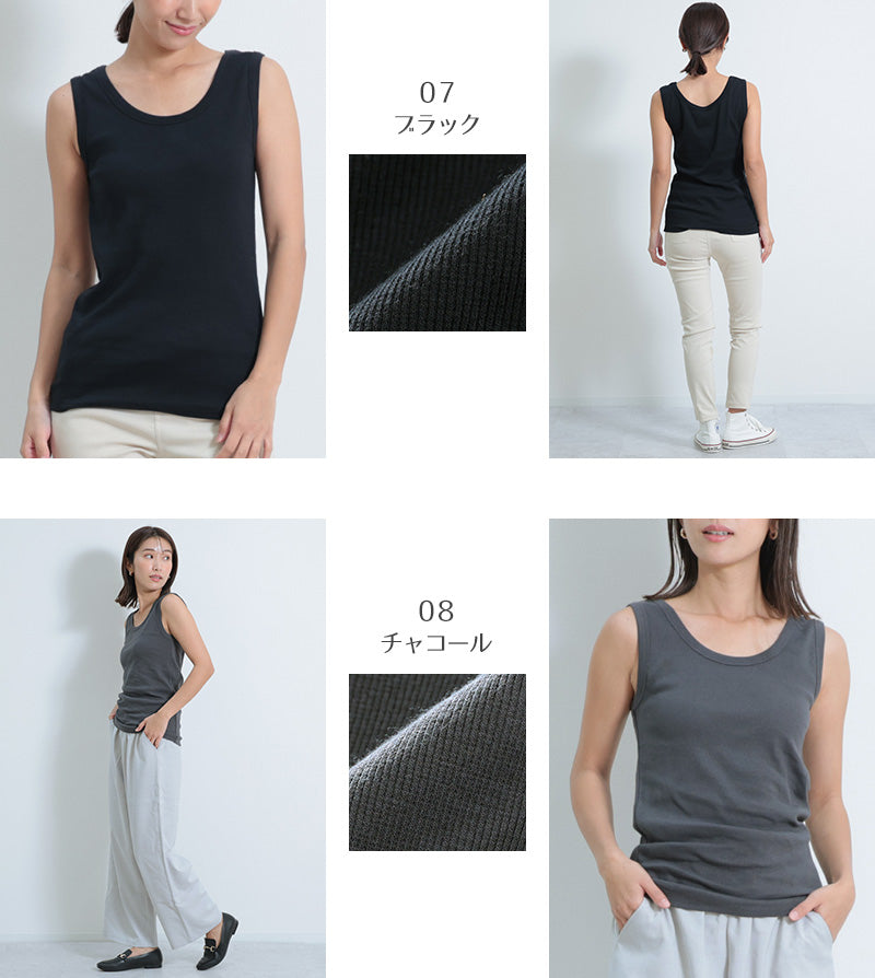 着まわしやすいデザインとカラー展開で、何枚あっても重宝するタンクトップです。