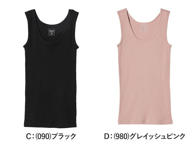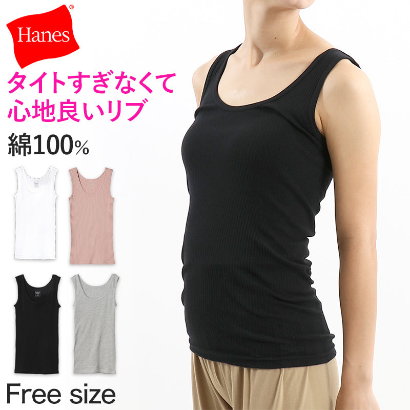 コットン100%の生地が肌に優しい履き心地のヘインズ・レディースリブタンクトップです。