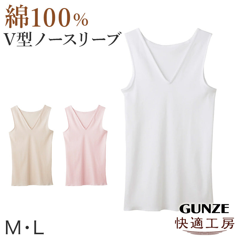 グンゼ 快適工房 婦人 Vネック ノースリーブシャツ M・L レディース スリーマー GUNZE 綿100% V首 女性 下着 肌着 インナー 白 ベージュ やわらか 日本製