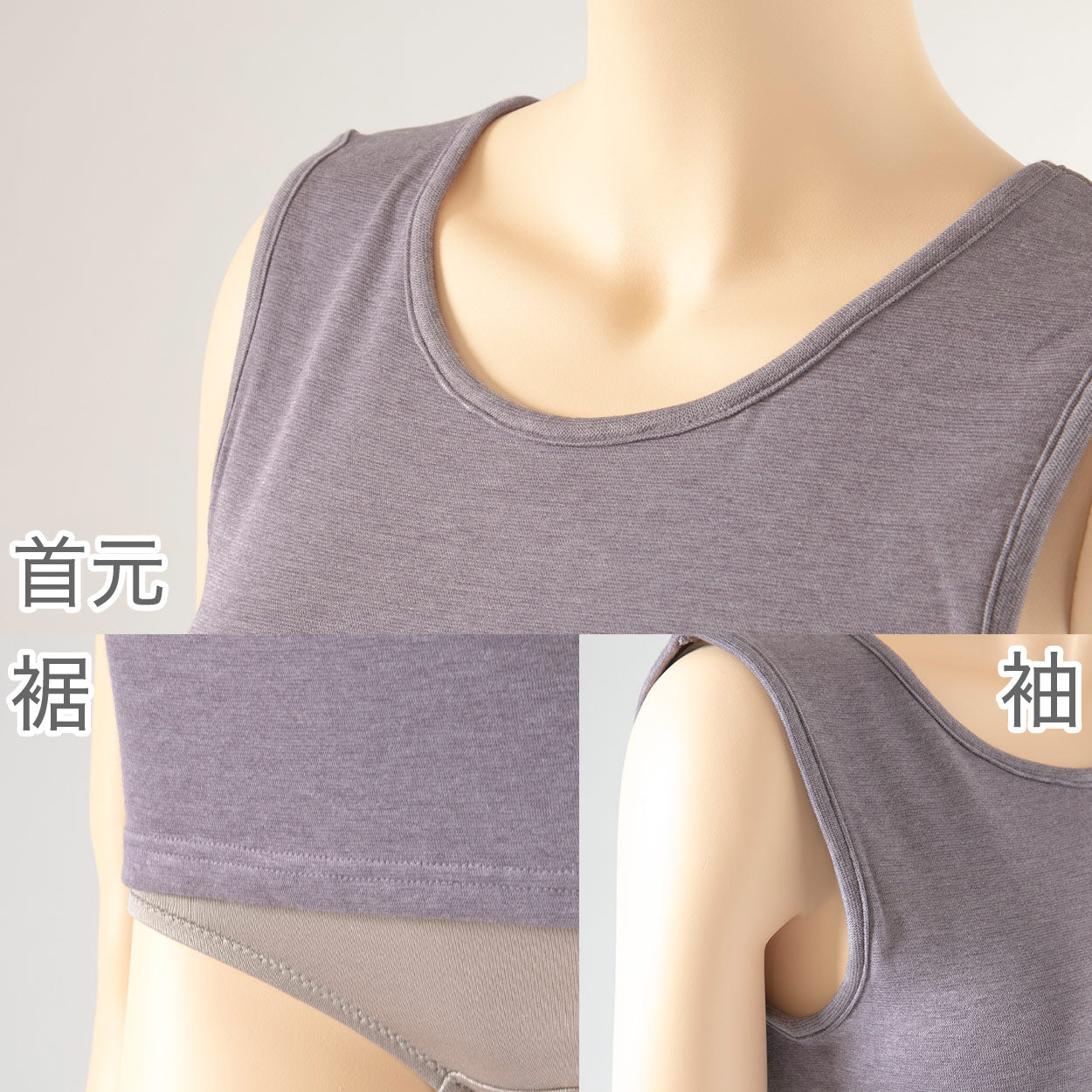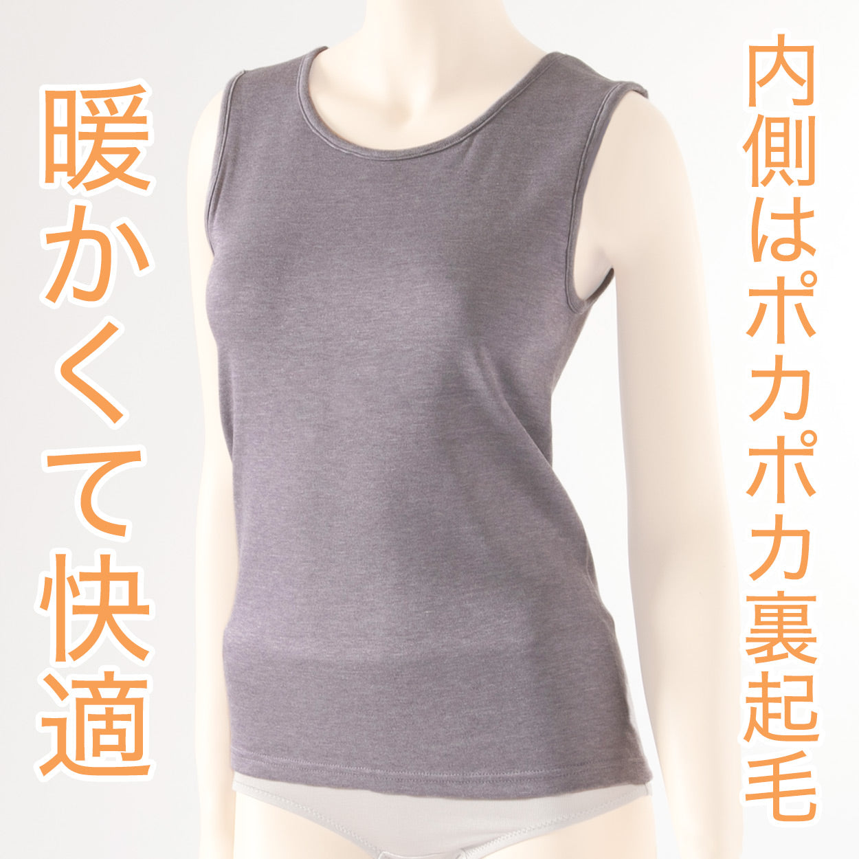 裏起毛 やや厚地 やや厚手 保温性 ノースリーブ 袖なし サイド縫い目なし ストレッチ 無地 レースなし 襟ぐり広め 首元広め