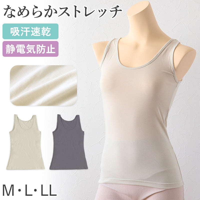 婦人 タンクトップ インナー ストレッチ 薄手 なめらか ノースリーブ シャツ M~LL