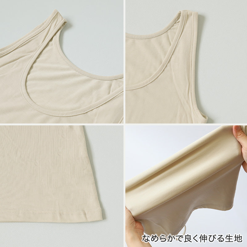 レーヨン混でなめらかな肌ざわりのインナータンクトップ。