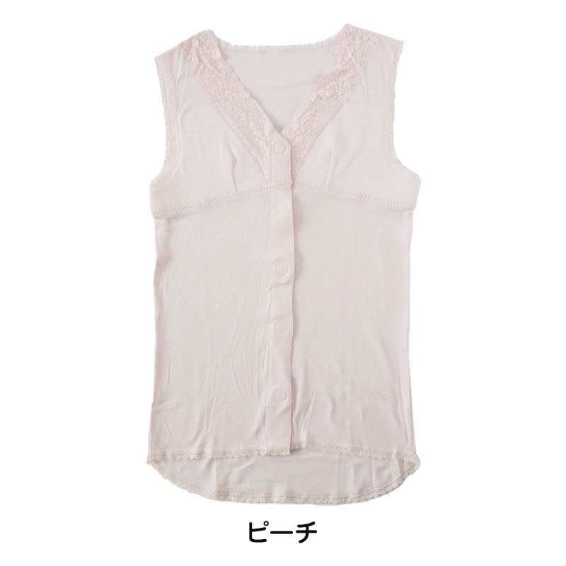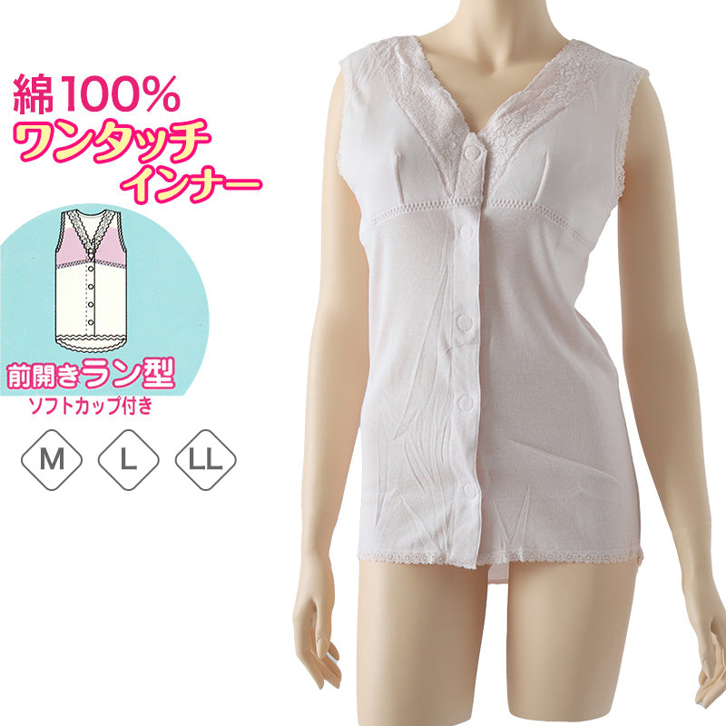 ワンタッチ 介護 肌着 前開き レディース タンクトップ 綿100 ソフトカップ付き マジックテープ M~LL