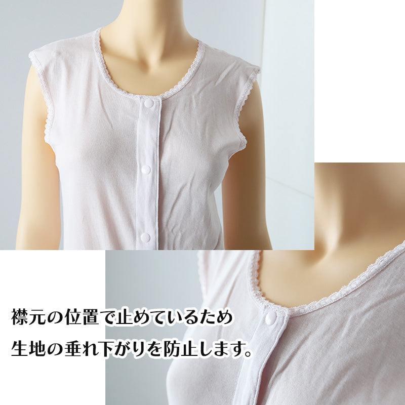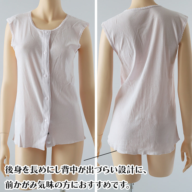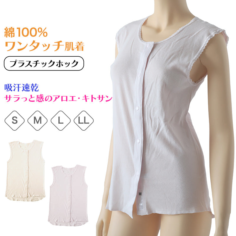 ワンタッチ 介護 肌着 前開き 綿100 プラスチックボタン レディース S~LL