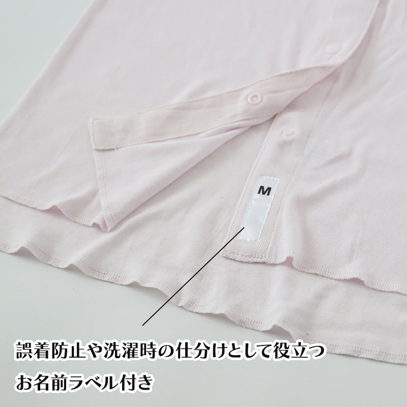 介護が必要な方や、自分で着替えるのが難しい方でも簡単に着脱できる、前開きタイプのラン型肌着です。