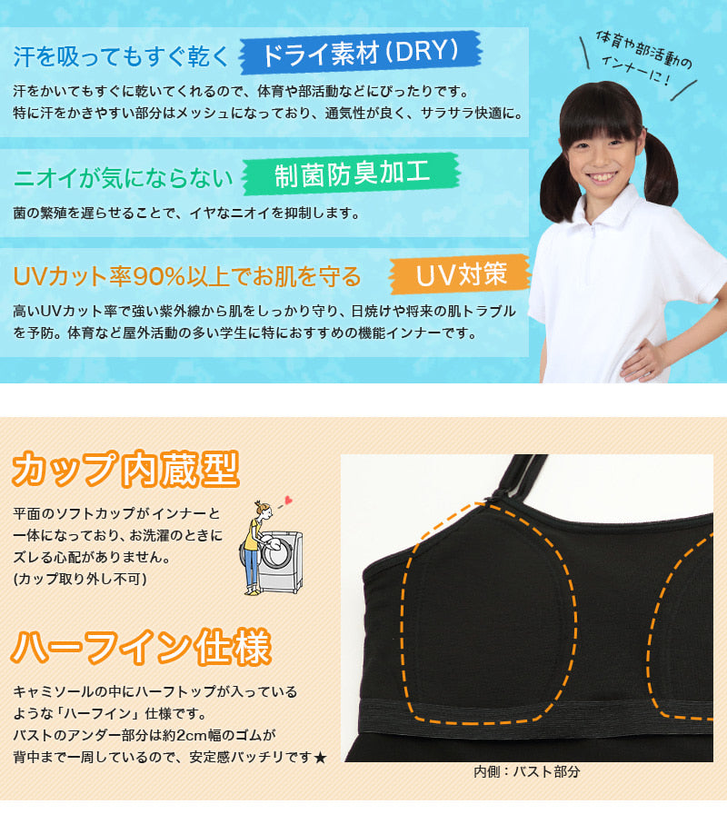 ハーフインキャミソール/体育deインナー/体育DEインナー/体育でインナー/女の子/女子/女児/しまむらファンにおすすめ k-g-cam-cup 32907/AIR/air065