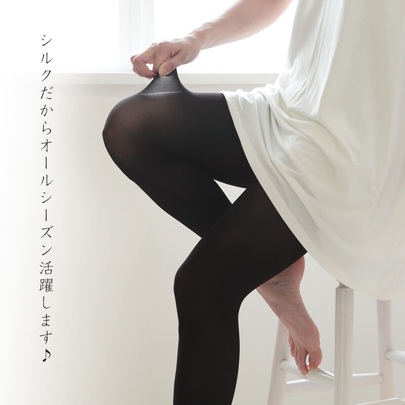 また、シルクはしっとりと水分を含んで静電気が起きづらいので、スカートやワイドパンツなどのボトムが静電気で足にまとわりつく事を防いでくれます。