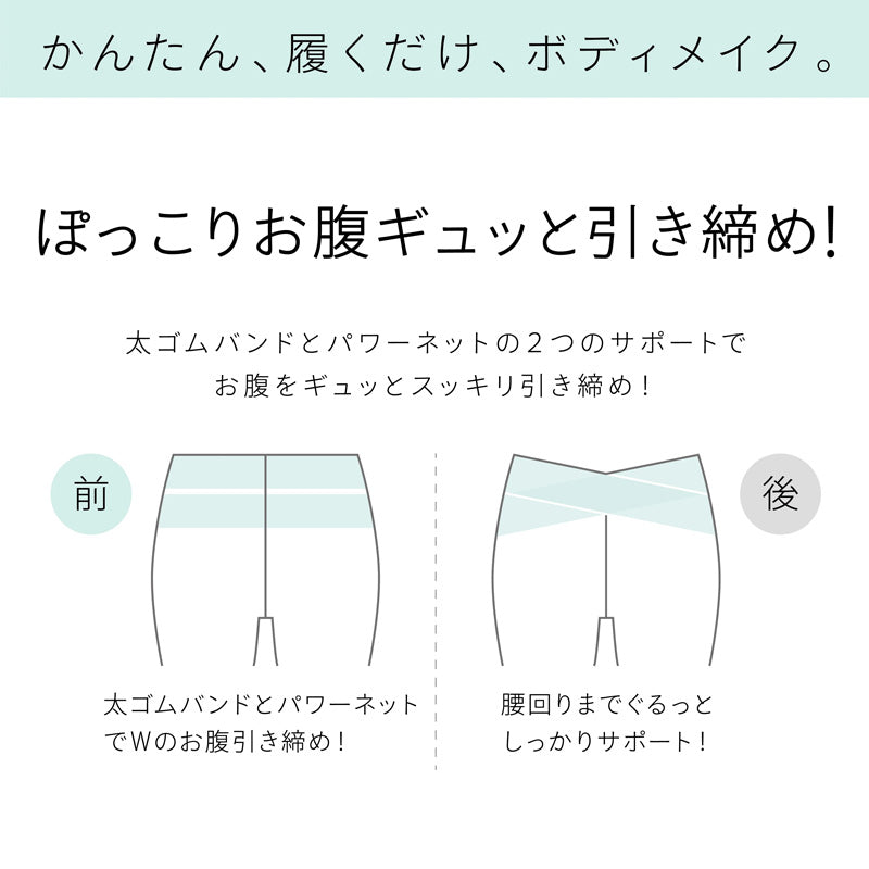 太ゴムバンドとパワーネットの2つのサポートでギュッとお腹を引き締め、