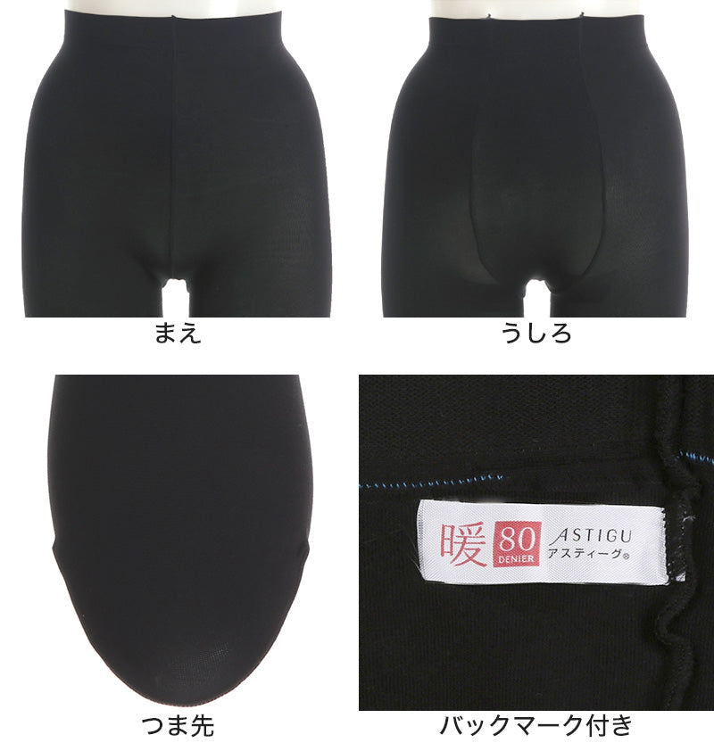 アツギ アスティーグ 暖 発熱タイツ 80デニール やわらかい JM-L